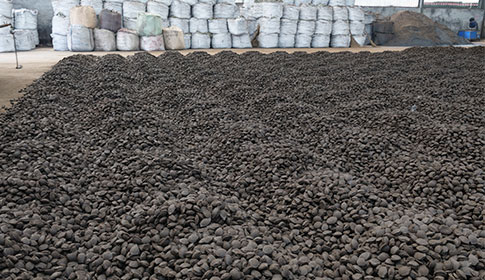 按照客户的含量指标要求,把所需要的原材料进行人工配比打样,化验合格后大规模备料,而后由全自动上料机配料,通过传送带到全自动压球设备生产线按照客户要求的粒度加工生产,经过全自动烘干机(或者经过晾晒)成型,而后装包等待销售。
